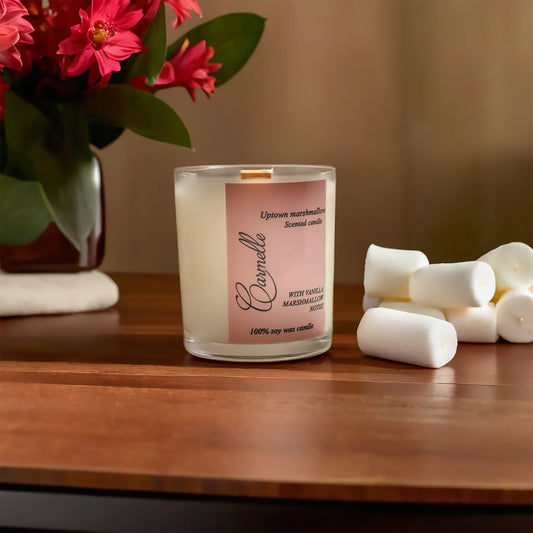 Natural soy wax scented wooden wick candle - Uptown Marshmallow